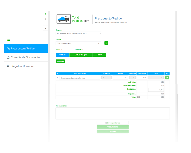 TotalPedidos cuenta con un menú de fácil acceso y una excelente organización, todas las secciones fueron diseñadas para garantizar una fácil comprensión e interacción de los usuarios