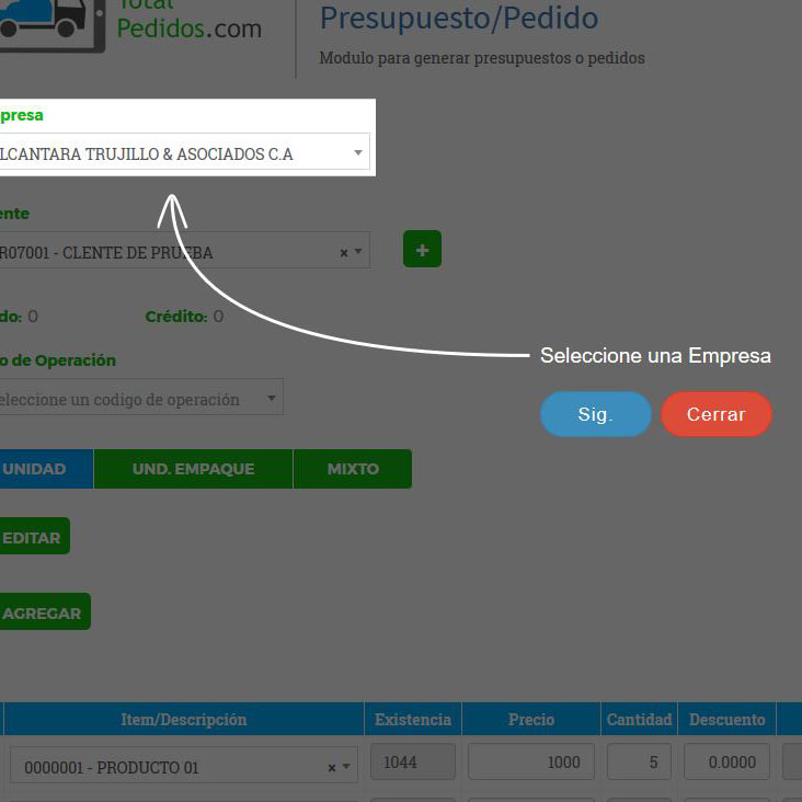 Carga y consulta de presupuestos o pedidos desde la Web desde cualquier dispositivo